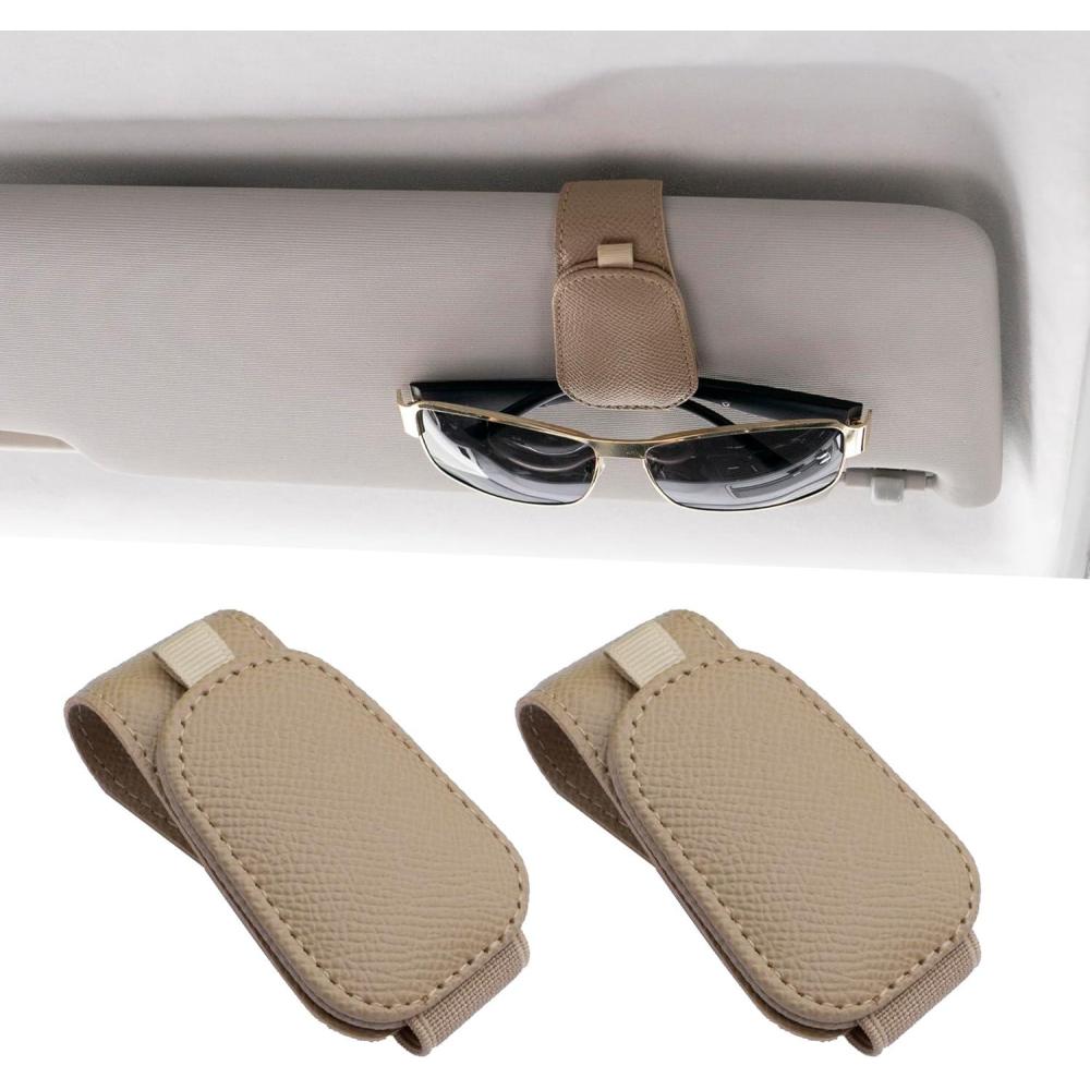 imageYuoyar 2 Packs Magnetic Sunglass Holder for Car Visor  Universal Sunglasses Clip for Different Size Eyeglasses  Convenient Interior Car Accessories GreyBeige
