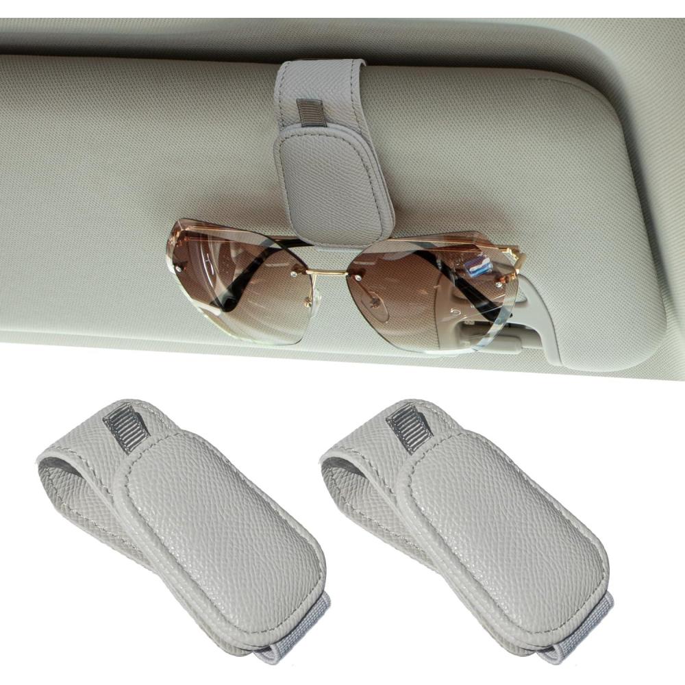 Yuoyar 2 Packs Magnetic Sunglass Holder for Car Visor - Universal Sunglasses Clip for Different Size Eyeglasses - Convenient Interior Car Accessories (Grey)(Grey)